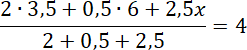 Zacznij od ułożenia równania. Po lewej stronie równania zapisz ceny kupionych owoców z użyciem niewiadomej x – ceny gruszek za kilogram. Podziel przez wagę kupionych owoców. Po prawej stronie równania zapisz znaną średnią cenę kupionych owoców za kilogram.