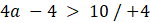 . Przenieś wszystkie wartości z „x” na jedną stronę nierówności, natomiast liczby na przeciwną stronę. Na koniec podziel obie strony nierówności przez 4.