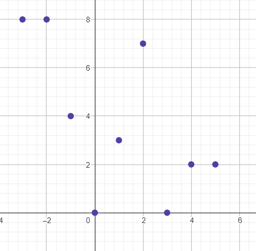 , Dziedzina: {– 3, –2, – 1, 0, 1, 2, 3, 4, 5}, dla 2 różnych argumentów przyjmuje wartość 8.