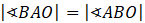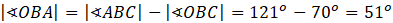 Oblicz miarę kąta OBA. Zauważ, że jest on równy różnicy miar kątów ABC i OBC.