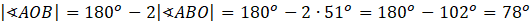Oblicz miarę kąta AOB. Ponownie skorzystaj z tego, że suma miar kątów w trójkącie wynosi