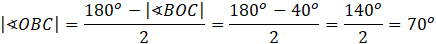 , a miary kątów przy podstawie trójkąta równoramiennego są równe i na tej podstawie oblicz miarę kąta OBC.