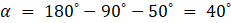 Suma miar kątów w trójkącie jest równa 180˚, więc: