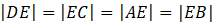 Trójkąty prostokątne AES, BES, CES, DES są przystające z cechy bok – kąt – bok.