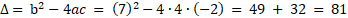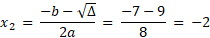 Rozwiąż równanie liniowe przyrównując sumę wartości współczynników wielomianu do 9, a następnie przy użycie wyróżniku trójmianu kwadratowego rozłóż wielomian na czynniki.