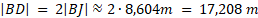 , aby obliczyć długość BJ, co pozwoli Ci obliczyć długość przekątnej BD. Zauważ, że trójkąty ABJ i AIF są do siebie podobne z cechy kkk. Skorzystaj z równości