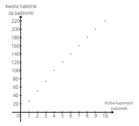 | Liczba kupionych sadzonek | 1 | 2 | 3 | 4 | 5 | 6 | 7 | 8 | 9 | 10 |
