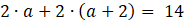 Wiemy, że jeden bok jest dłuższy od drugiego o 2 cm:
