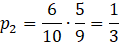2. Z pierwszej urny wylosowano dwie kule białe. W pierwszym losowaniu masz do wyboru 6 kuli białych z 10, a w drugim losowaniu 5 białych z 9.