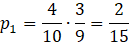 1. Z pierwszej urny wylosowano dwie kule czarne. W pierwszym losowaniu masz do wyboru 4 kule czarne z 10, a w drugim losowaniu 3 czarne z 9.