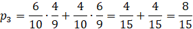 3. Z pierwszej urny wylosowano jedną kule czarną i jedną białą. W pierwszym losowaniu masz do wyboru 6 kuli białych z 10, a w drugim losowaniu 4 czarne z 9 lub w pierwszym losowaniu masz do wyboru 4 kule czarne z 10, a w drugim losowaniu 6 kul białych z 9.