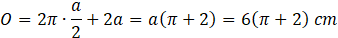Obwód O składa się z sumy obwodu okręgu o promieniu