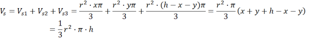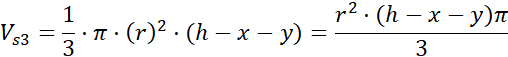 Bryła 4: suma objętości 3 stożków: jednego o promieniu podstawy r i wysokości x, drugiego o promieniu podstawy r i wysokości y oraz trzeciego o promieniu podstawy r i wysokości h – x – y