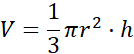 Bryła 1: objętość stożka o promieniu podstawy r i wysokości h