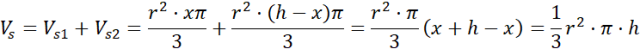 Bryła 2: suma objętości 2 stożków: jednego o promieniu podstawy r i wysokości x, drugiego o promieniu podstawy r i wysokości h – x