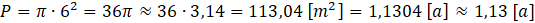 Oblicz pole koła o promieniu 6 m i podaj wynik w arach.