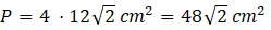 . Najpierw obliczono pole jednego trójkąta, a później pomożono tę wartość przez 4, w celu uzyskania pola całej figury.