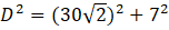 Odległość między czubkami latarni jest przeciwprostokątną trójkąta, w którym przyprostokątnymi są przekątna podłogi i różnica wysokości latarni. Wartości tej odległości należy wyznaczyć, korzystając z twierdzenia Pitagorasa.