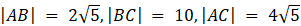 Długości boków trójkąta ABC wyznaczysz następująco:
