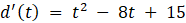 Kiedy punkt oddalał się od zera, wartości funkcji d(t) rosły. Powinieneś zatem znaleźć taki przedział, na którym funkcja ta będzie rosnąć.