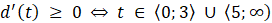 W tym zadaniu musisz znaleźć przedział czasu, w którym opisany punkt oddalał się od zera na osi liczbowej, czyli przedział, na którym funkcja d(t) rośnie.
