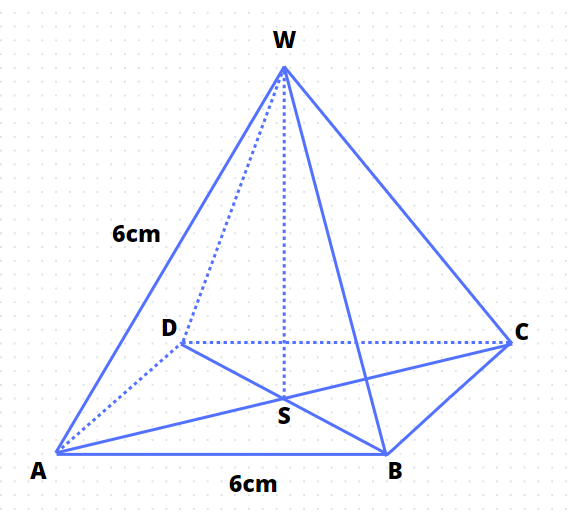Należy przede wszystkim skorzystać z informacji, że posiadając w ostrosłupie wszystkie krawędzie tej samej długości należy stwierdzić, iż jest to czworościan. Zatem przekątna podstawy, czyli odcinek |AC| równy jest