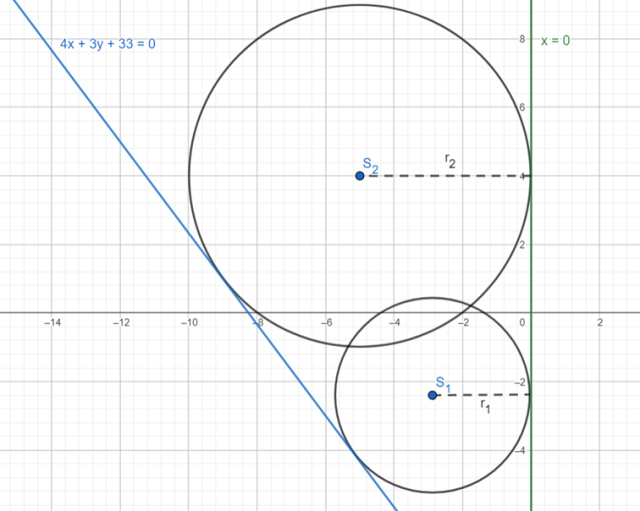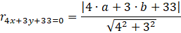 Skorzystaj ze wzoru na odległość punktu od prostej i oblicz odległość środka okręgu od prostej