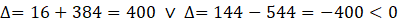 Zauważ, że aby równanie miało rozwiązania to delta musi być większa od zera. Bierzesz więc pod uwagę tylko pierwsze z równań.