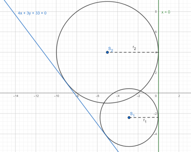 Ponownie skorzystaj ze wzoru na odległość punktu od prostej, czyli środka okręgu od prostej