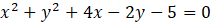 Odczytaj współrzędne środka okręgu oraz jego promień ze wzoru ogólnego okręgu: