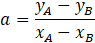 Wykorzystaj współrzędne podanych punktów, żeby obliczyć współczynnik kierunkowy przechodzącej przez nią prostej: