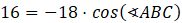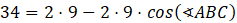 Oblicz cosinus kąta 𝐴𝐵𝐶 za pomocą twierdzenia cosinusów: