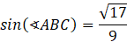 Oblicz sinus kąta 𝐴𝐵𝐶, wykorzystując jedynkę trygonometryczną: