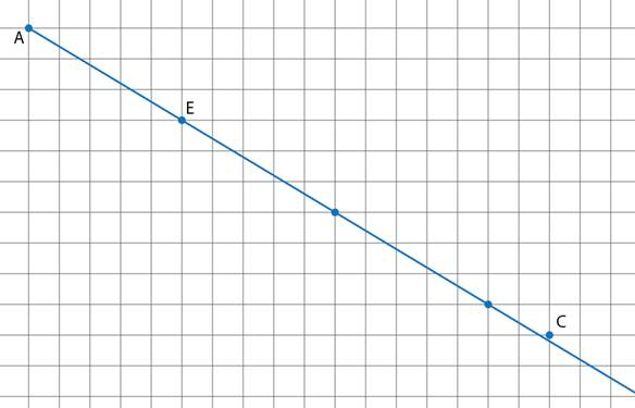 Aby wykonać zadanie, przerysuj do zeszytu punkty A, E i C, następnie narysuj prostą łączącą punkty A i E i przedłuż ją tak, aby sprawdzić, czy ta prosta przechodzi również przez punkt C.