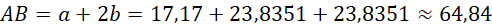 Punkty A i B znajdują się po dwóch różnych stronach komina dlatego AB=a+2b