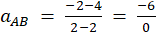 Wyznaczamy współczynnik kierunkowy prostej zawierającej odcinek AB.