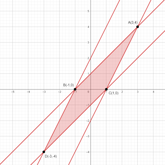 Pole otrzymanego równoległoboku (bo dla prostych zawierających jego boki zachodzi parami