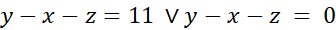 to symbol oznaczający „lub”. Najpierw zapisujemy warunek zadania oraz podaną liczbę trzycyfrową. Następnie zapisujemy warunek dotyczący podzielności przez 11 (liczba jest podzielna przez 11, gdy różnica między sumą cyfr stojących na miejscach parzystych i sumą cyfr na miejscach nieparzystych jest wielokrotnością 11 lub 0). W następnym kroku rozpatrujemy ten warunek, dostając w efekcie 3 możliwe liczby. Należy sprawdzić, czy dzielą się one przez 33 i w ten sposób otrzymujemy wynik.