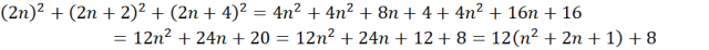 oznacza, że reszta z dzielenia sumy kwadratów trzech kolejnych liczb parzystych przez 12 wynosi 8.
