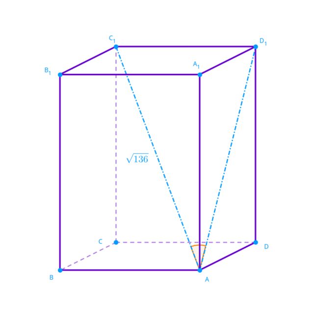 Oblicz długość przekątnej AD1, korzystając z definicji funkcji trygonometrycznych: