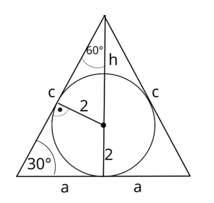 . Wysokość trójkąta to suma promienia okręgu i obliczonego wcześniej odcinka. Ponownie skorzystaj z wiadomości o trójkącie