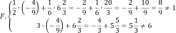 w każdym równaniu w podanym układzie równań podstaw liczby z odpowiedzi A-H i sprawdź, w którym przypadku w obu równaniach lewa strona nie będzie równa prawej.