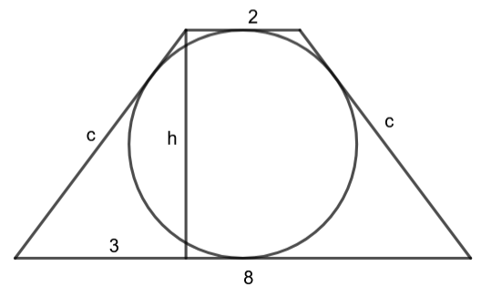Zauważ, że jeśli w czworokąt można wpisać okrąg, to suma przeciwległych boków jest taka sama. Na tej podstawie oblicz długość ramienia powstałego trapezu, a następnie z twierdzenia Pitagorasa wyznacz jego wysokość.