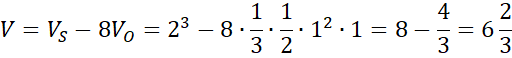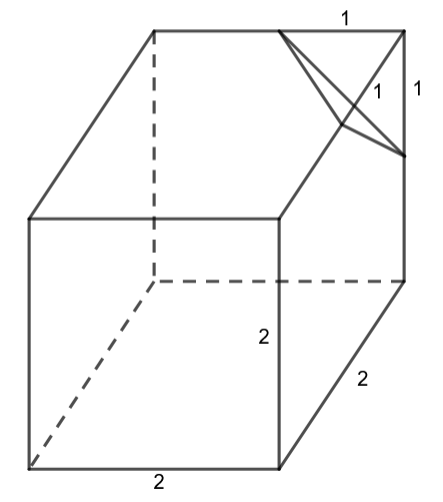 Wyznacz objętość wielościanu, jeśli od sześcianu, którego krawędź ma długość 2, odcięto naroża zawierające po jednym wierzchołku płaszczyznami przechodzącymi przez środki krawędzi wychodzących z tych wierzchołków.
