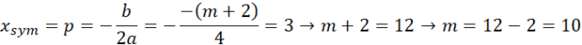 Dla x = 3 (podana współrzędna x-owa wierzchołka paraboli):