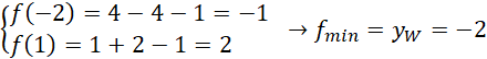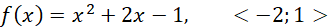 Najmniejsza wartość funkcji f określonej wzorem f(x) = x2 + 2x – 1 w przedziale <-2;1> jest równa: A. –2