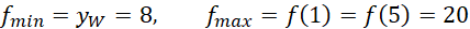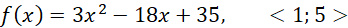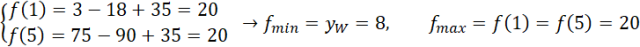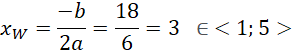 Musisz przekształcić podany wzór do postaci ogólnej oraz ustalić wartość minimalną i maksymalną funkcji w przedziale.