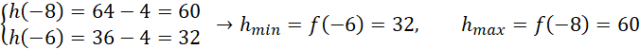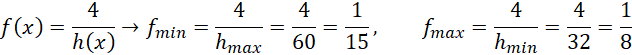 Musisz obliczyć wartości maksymalne i minimalne funkcji w mianowniku funkcji f, a następnie obliczyć te wartości dla funkcji f.