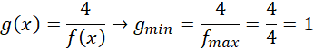 Musisz obliczyć wartość maksymalną dla funkcji w mianowniku funkcji g(x) a następnie obliczyć minimalną wartość funkcji g(x).