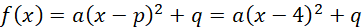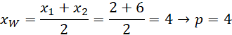 Z wykresu możemy odczytać, że funkcja dla argumentów x = 2 oraz x = 6 przyjmuje równe wartości. Możemy z tej własności obliczyć współrzędną x-ową wierzchołka paraboli: